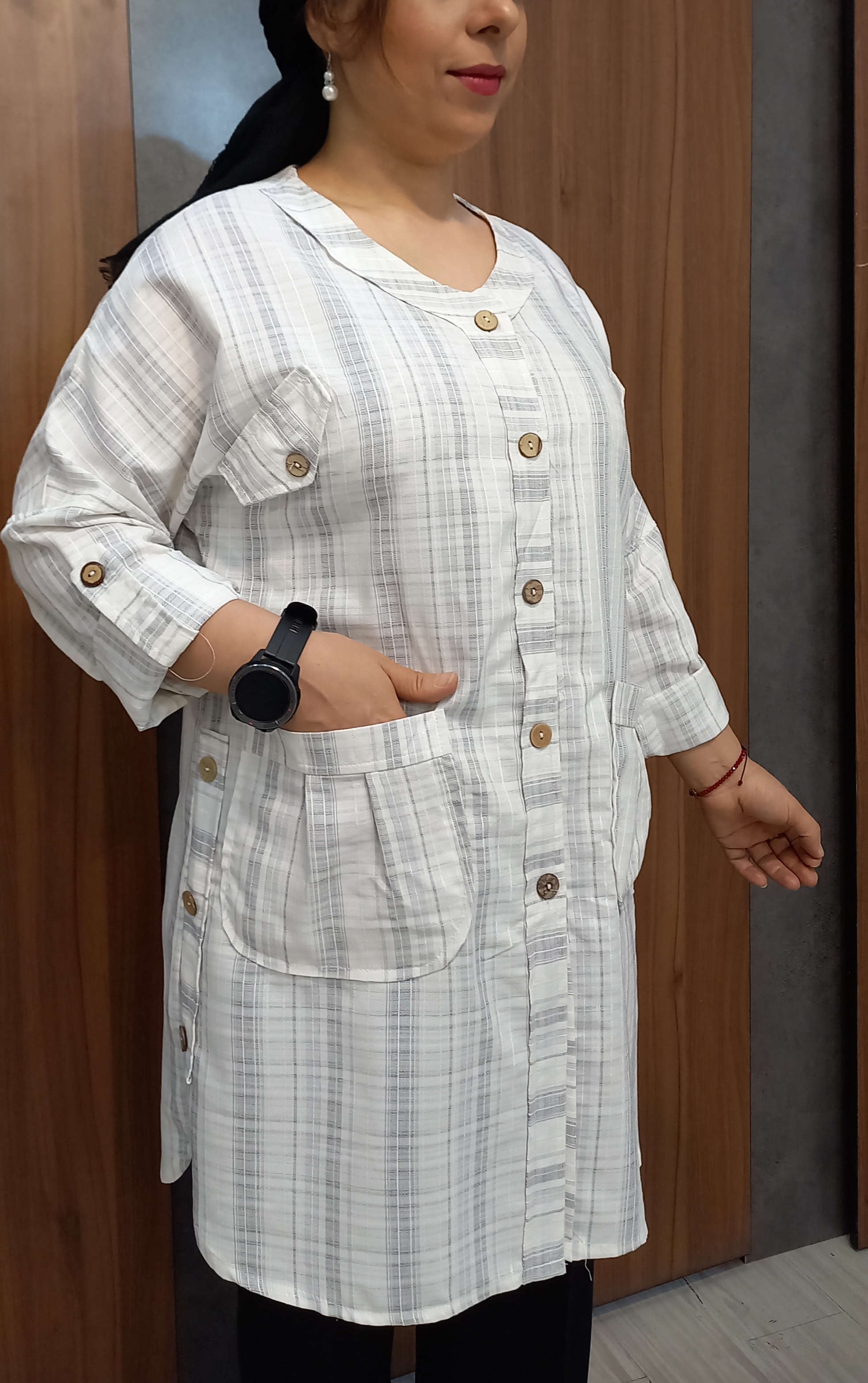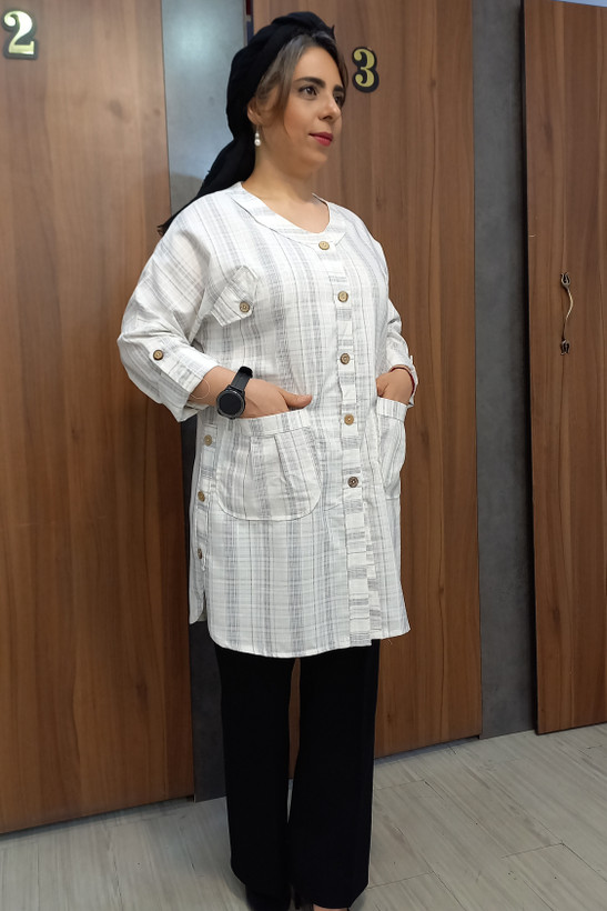 + موارد بیشترجنس این مدل بسیار سبک و خنک،به هیچ عنوان آبرفت،پرزدهی نداره،رنگ روشنی که داره باعث میشه گرما رو کمتر احساس کنید،جیب کاربردی یکی دیگه از امتیازهای این مدل،،جلو دکمه دار،و آستین بلند