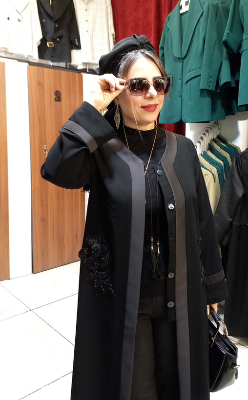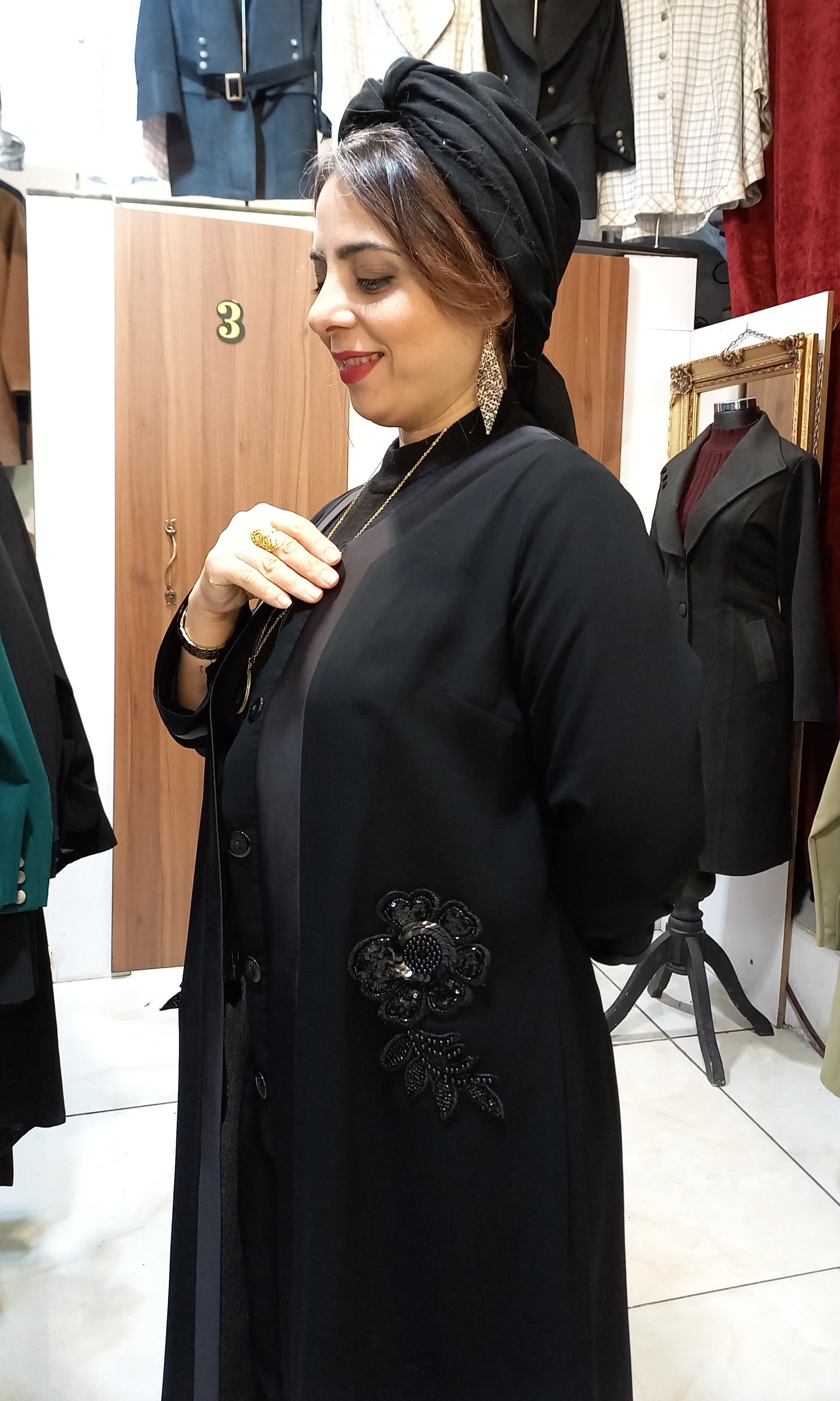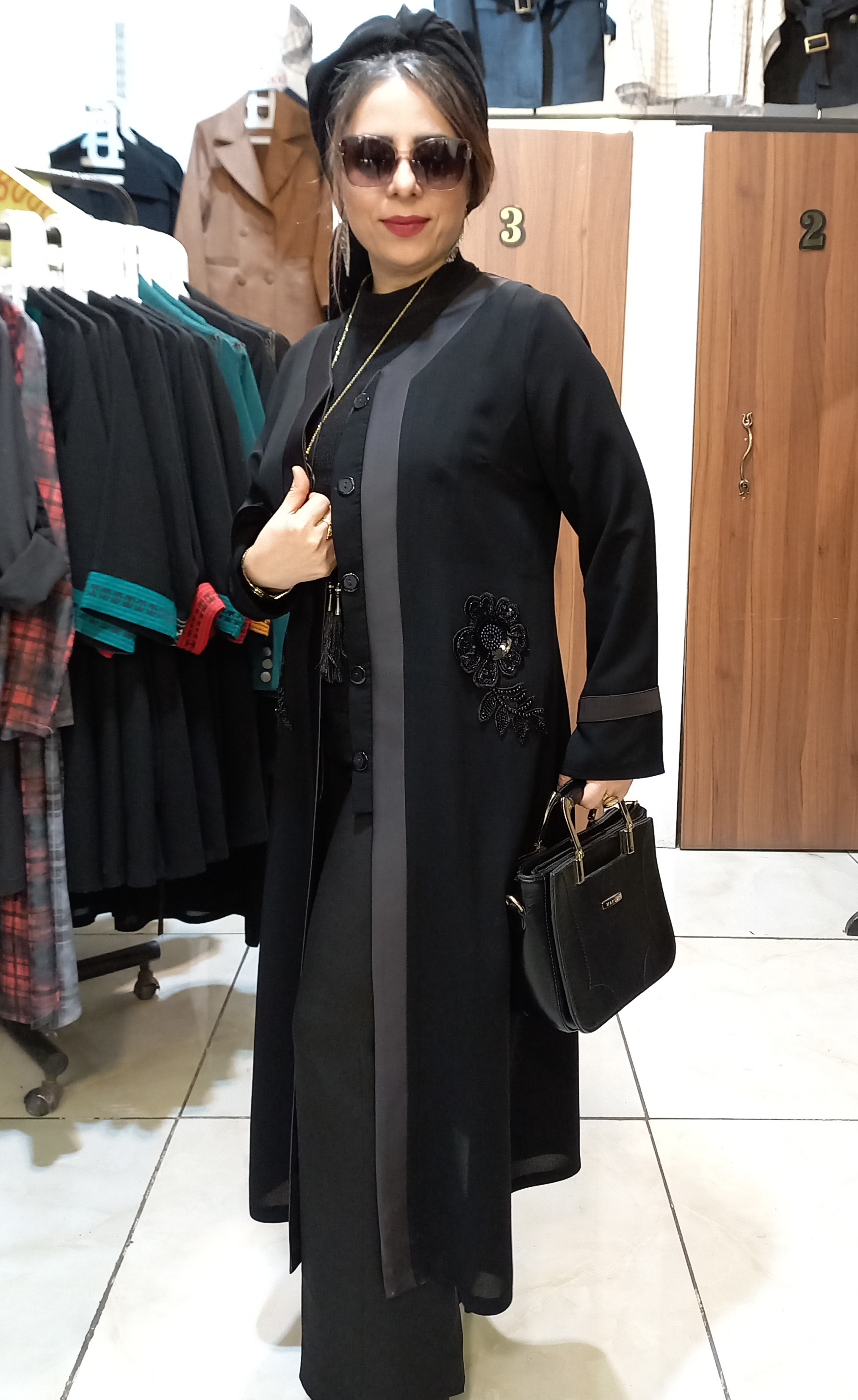 سایز۴۴،دور بازو ۳۸ سانت،قد آستین ۶۰ سانت،دورسینه۱۰۴ سانت،دورباسن،۱۱۸ سانت،قد مانتو ۱۲۰سانت